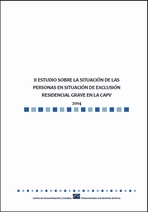 Este informe, elaborado por el SIIS Centro de Documentación y Estudios, recoge los resultados del recuento de personas en situación de exclusión residencial grave realizado de forma simultánea la noche del 29 al 30 de octubre de 2014 en diez municipios de la CAPV (Barakaldo, Bilbao, Getxo, Portugalete, Santurtzi, Sestao, Donostia, Irun, Laudio y Vitoria-Gasteiz). Se trata de una investigación de notable interés, no sólo porque se fija en uno de los colectivos más olvidados por las políticas sociales, sino porque da continuidad a un estudio similar llevado a cabo en 2012 en las tres capitales vascas, ampliándolo a otros siete municipios, que, en conjunto, agrupan a más de la mitad (52,8 %) de la población residente en Euskadi en 2014.